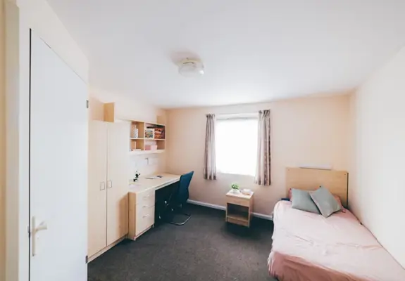The room will be furnished with a small double bed and mattress. You will also get a desk, chair, bookshelves, wardrobe, a bin, mirror and a lamp.